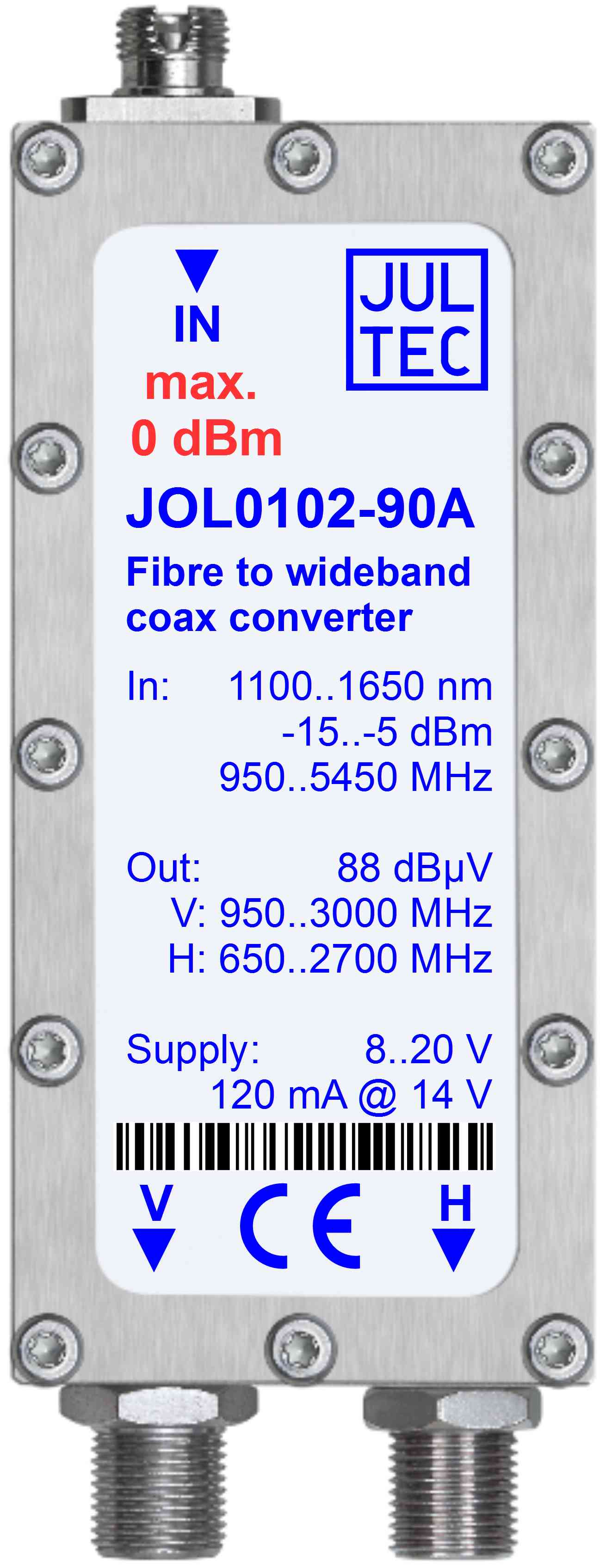 Der Jultec JOL0102-90A ist ein optisch-zu-koaxialer Konverter, der dazu entwickelt wurde, Satellitensignale, die über Glasfaser übertragen werden, in Breitband-Koaxial-Verteilungssysteme zu integrieren. Er ist speziell auf die a²CSS und a²CSS2 Einkabel-Satellitensysteme von Jultec abgestimmt.