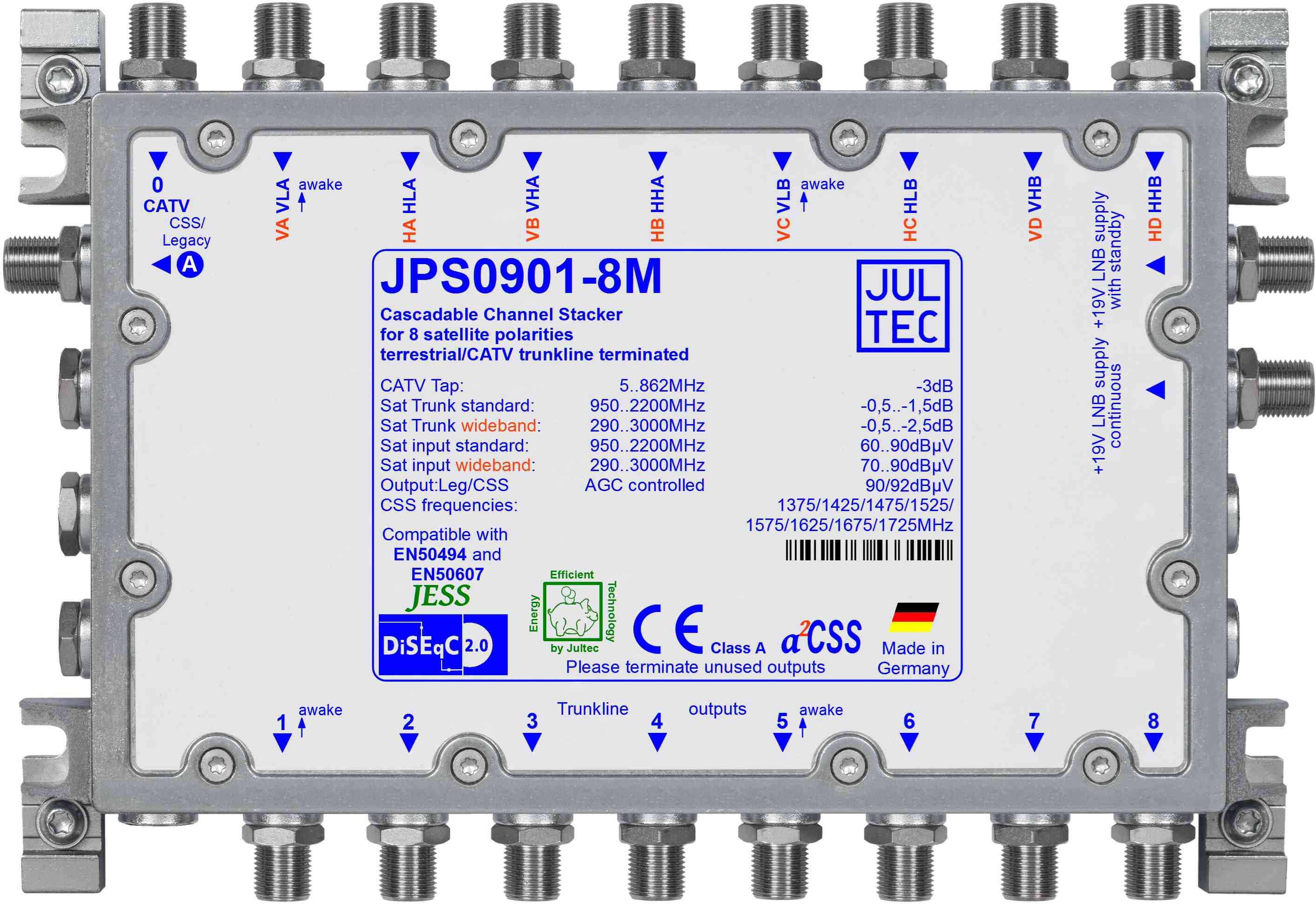 Der Jultec JPS0901-8M ist ein leistungsstarker Unicable-Multischalter, der Signale von bis zu zwei Satellitensystemen (oder vier im Wideband-Modus) an acht Nutzer-Ausgänge verteilt. Mit der fortschrittlichen a²CSS2-Technologie ermöglicht er eine flexible und effiziente Signalverteilung in Satellitenanlagen.